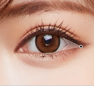 瞳孔を基準に吊り上がった目尻を下げ