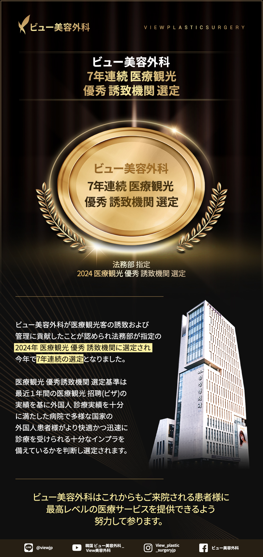 ♡ビュー美容外科 7年連続 医療観光 優秀 誘致機関 選定♡